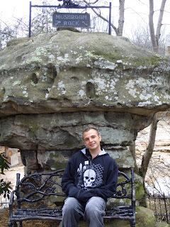 A neat place to go if you ever travel to Chattanooga, TN is Rock City.  If you can't read the sign, This is Sam in front a rock formation there called 'mushroom rock.'